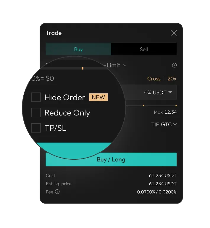 let you place limit orders that stay fully hidden from the public order book — size and direction are not